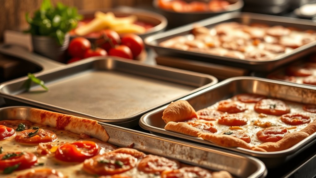 Ultimately, selecting the right Detroit-style pizza pan is essential for achieving that perfect, crispy crust and gooey cheese. Imagine pulling a golden-brown pie from the oven, steam rising as you cut into the layers of sauce and toppings. Whether you prefer deep dish or Sicilian-style, investing in a quality pan will elevate your pizza-making experience. With the right tools, you’ll create delicious, crowd-pleasing pies that showcase the rich flavors of this beloved style. Enjoy your baking!