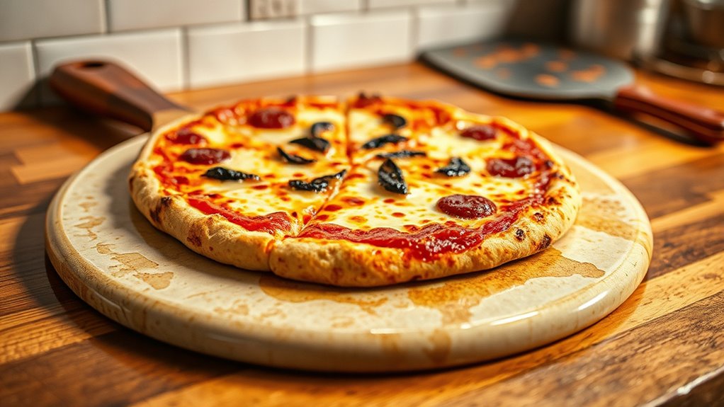 Using a glazed pizza stone ensures a crispy crust with optimal heat retention and moisture prevention for perfect baking.