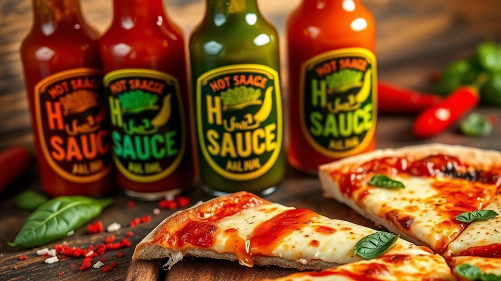 To sum up, if you want to elevate your pizza game to legendary status, these hot sauces are essential. Sriracha brings a garlicky sweetness that’ll have your taste buds dancing, while Tapatío adds a smokiness that can turn any slice into a fiesta. Frank’s Red Hot is the ultimate versatile option, perfect for any topping combination. Experiment with these sauces, and you’ll find yourself on a flavor adventure that’s nothing short of spectacular. Your pizza nights will never be the same!