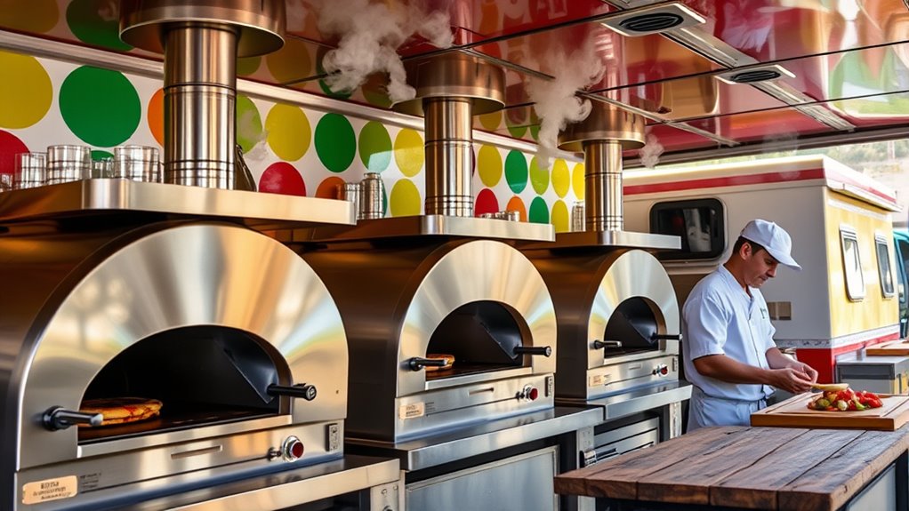 These features not only enhance your cooking capabilities but also improve your overall operational efficiency, making your food truck a reliable choice for pizza lovers on the go.